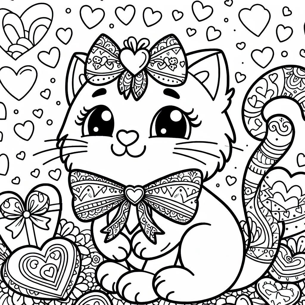 Valentine Cat Coloring Pages Webp